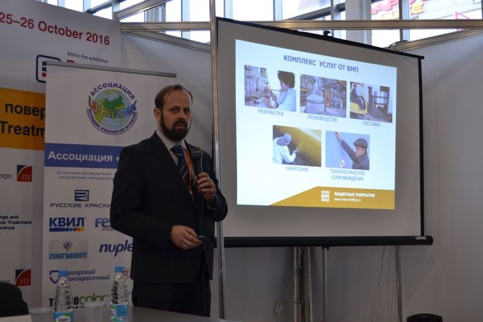 На выставке специалисты холдинга ВМП представили передовые антикоррозионные системы покрытия и поделились своим опытом по долговременной защите объектов Газпрома. С докладом «Покрытия ВМП – современное решение вопросов защиты объектов Газпрома» выступил руководитель направления «Нефтегазовая отрасль» Вадим Иванович Вырлан.