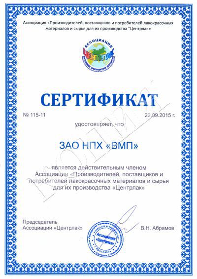 В конце 2015 года холдинг ВМП стал действительным членом Ассоциации «Производителей, поставщиков и потребителей лакокрасочных материалов и сырья для их производства «Центрлак». А президент холдинга, Вахрушев Михаил Владимирович, вошел в состав правления данной Ассоциации.
