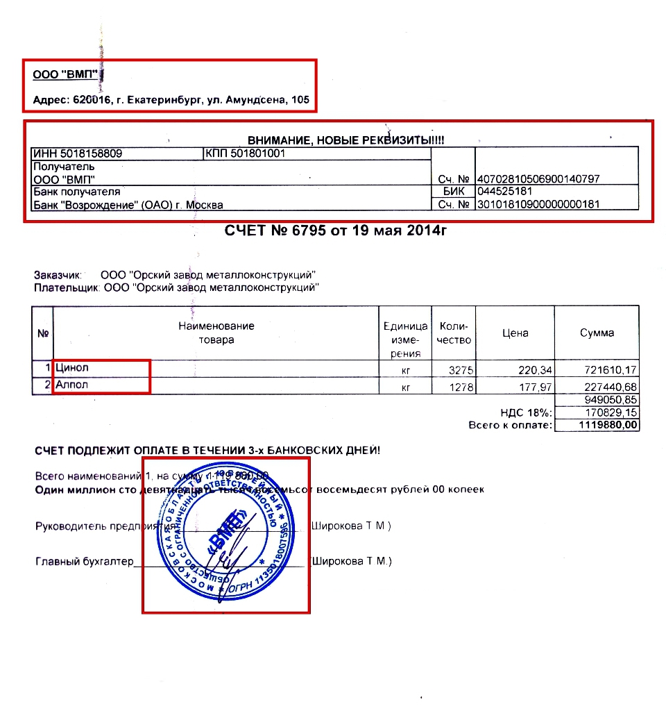 Сотрудниками холдинга выявлен очередной факт недобросовестных действий ООО «ВМП» г. Юбилейный. На этот раз ООО «ВМП», г. Юбилейный выставляет счета, вводящие в заблуждение покупателей.